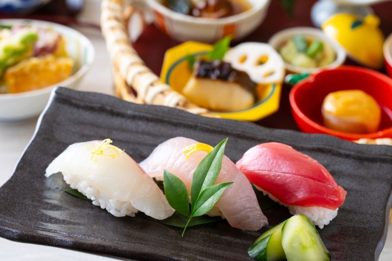 昨年もご好評をいただいた「握り寿司」や冬の味覚が詰まった小鉢の籠盛りをお楽しみください♪