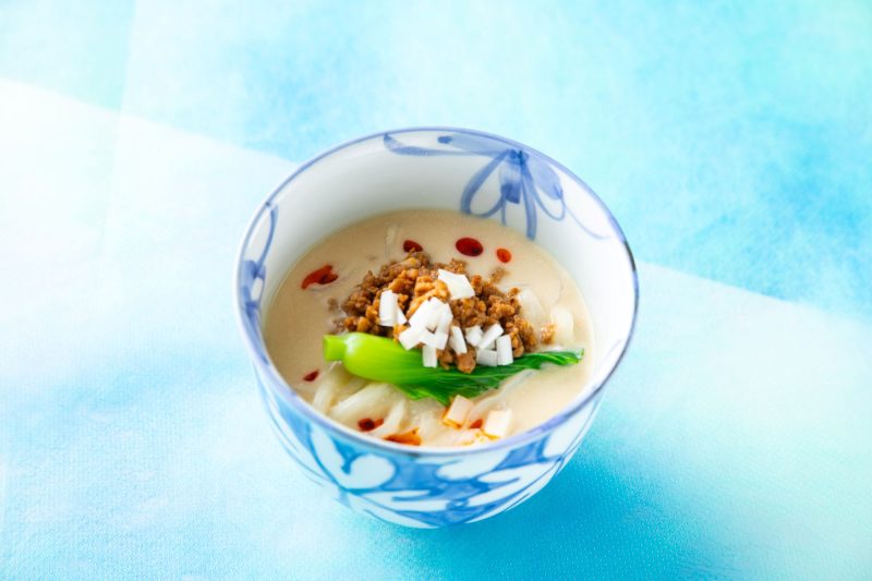 [6月] 豆乳担々うどん (肉味噌、青梗菜、白髪葱)
